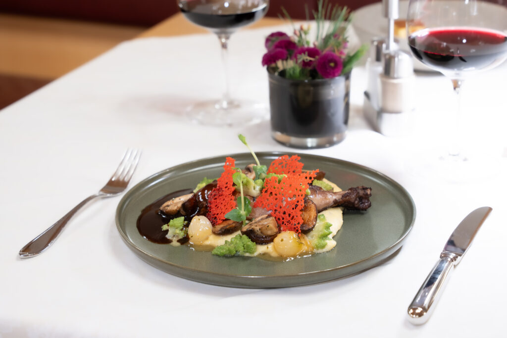 Abends 5-gängiges Genießermenü mit vegetarischer Variante (teils auch vom Buffet oder Themenbuffet).